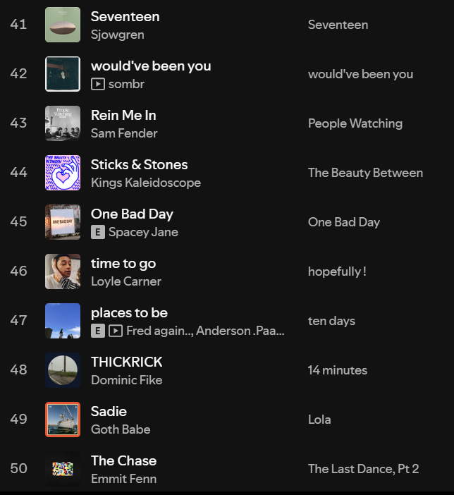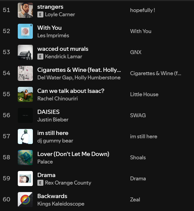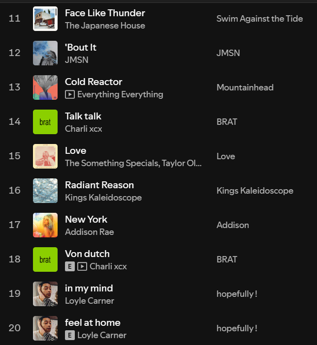 Well that’s it, there you go. If you have any thoughts or responses to any of this, let me know! Also I would love to hear your Spotify wrapped/top music from the year. Any similarities to me? Anything I haven’t written about? Or recommendations I NEED to check out? Let me know!